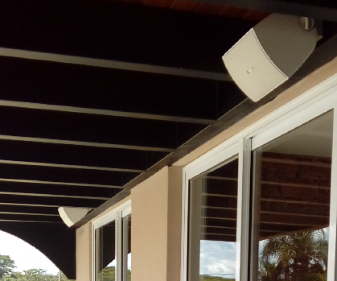 Piscina: Receiver Stereo Harman, e 4 caixas outdoor Yamaha.