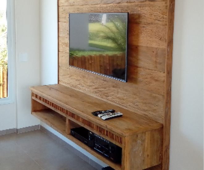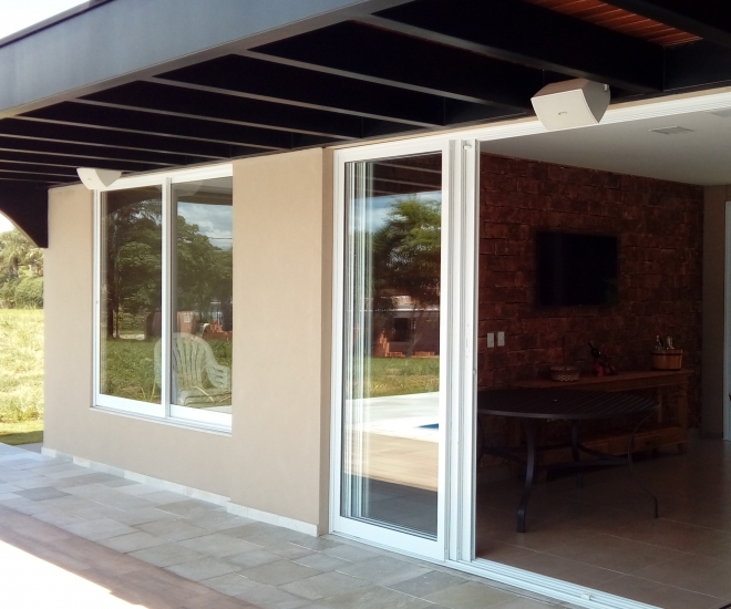 Sistema centralizado com extensor de controle remoto, todos os equipamentos (receiver, Sky, Apple TV, Blu-ray) instalados no Home Theater permite o usuário curtir todas as fontes de áudio e vídeo estando na varanda alem de poder trocar os canais da Sky, Blu-ray e aumentar o volume.
