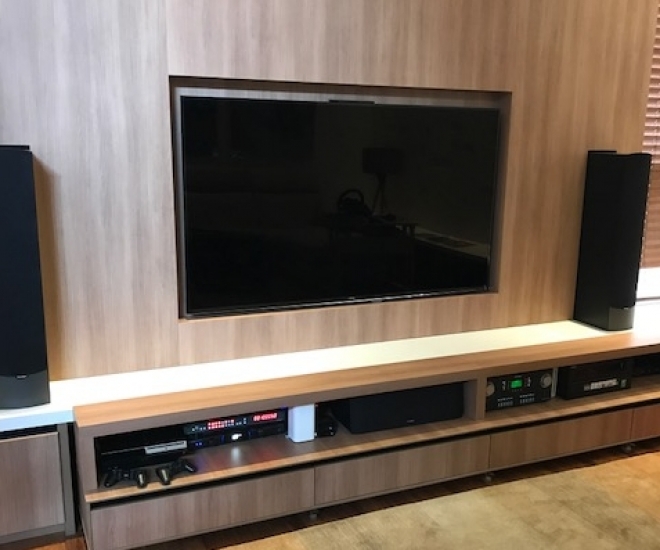 Sistema centralizado onde todos os equipamentos de áudio e vídeo estão instalados no Rack do Home.