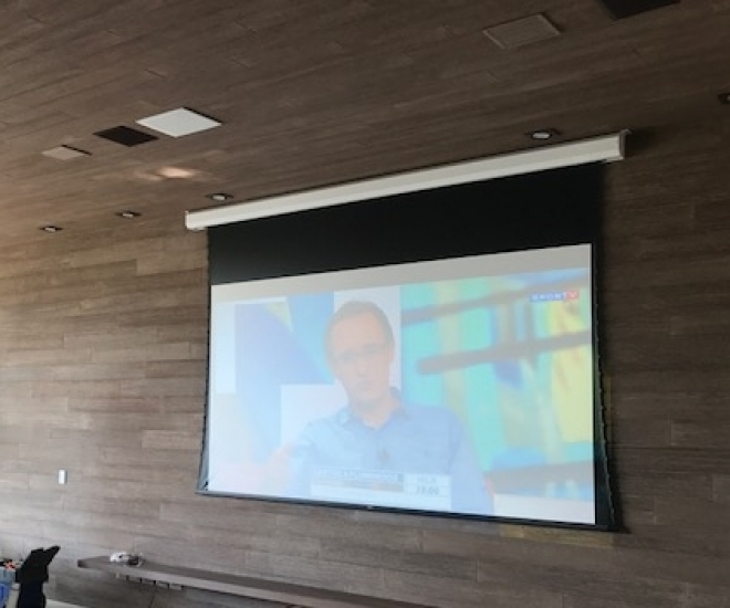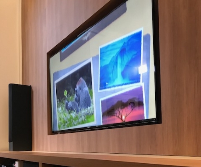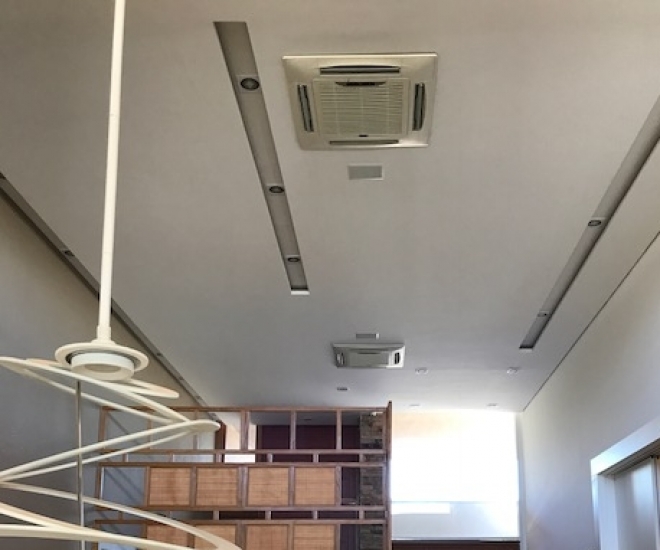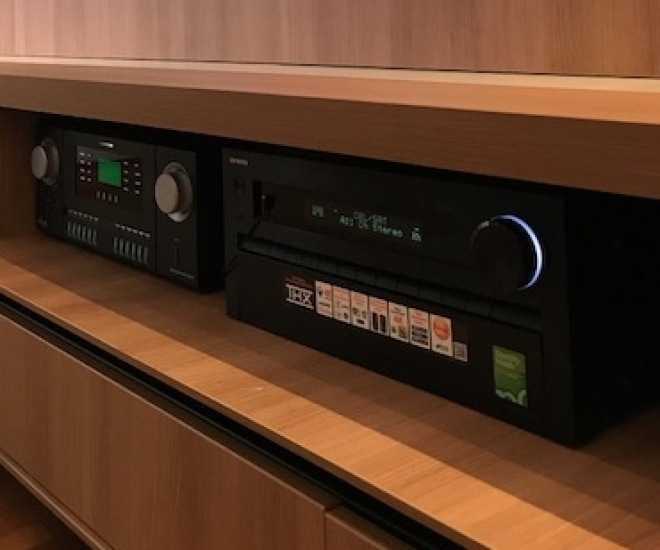 Foi instalado um aparelho chamado Adagio da Crestron, este equipamento tem 6 zonas de áudio amplificadas que permite sonorizar até 6 ambientes. Este mesmo aparelho é uma central de automação que comanda todos os aparelhos de áudio, vídeo e ar-condicionado.